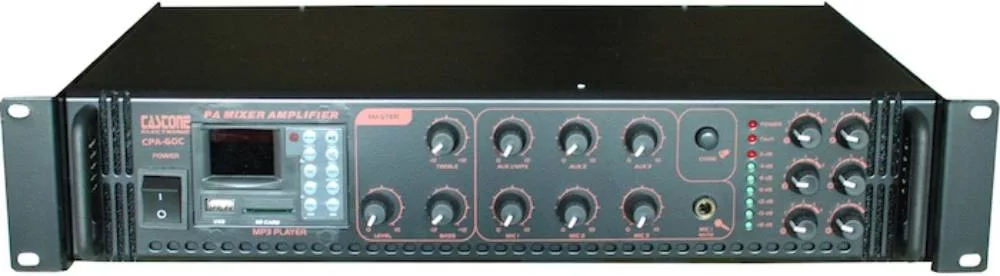 A CPA sorozat MP3 lejátszást támogató, FM tunerrel ellátott, 180W kimenő teljesítményű, három mikrofon és három vonal bemenetű, közös mély, magas hangszínszabályozóval, csatornánkénti hangerőszabályzóval rendelkező keverő erősítője 100V-os hanghálózatokhoz vagy 4-16 Ohm terhelésre használható. Az alábbi jellemzők indokolják ezen készülékek széleskörű alkalmazhatóságát intézmények, áruházak, kültéri rendezvények stb. információs és műsoros hangosítási feladataira.