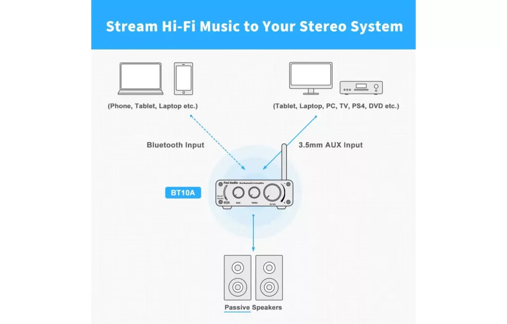 Frissítse audió rendszerét a funkciókban gazdag Fosi Audio BT10A sztereó erősítővel. Ez a kompakt erősítő új életet lehel a passzív hangszóróiba, és egyszerű, hatékony módot kínál a hallgatási élmény fokozására.