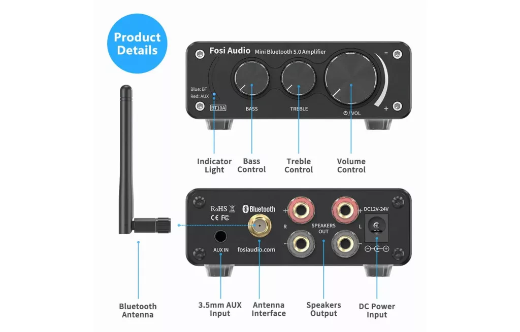A BT10A szíve a Bluetooth 5.0 csatlakoztathatóság. Streameljen zenét közvetlenül okostelefonról, táblagépről vagy más kompatibilis eszközről, ezzel megszüntetve a kábelek okozta rendetlenséget és tiszta, rendezett környezetet teremtve. A hatékony teljesítményátvitel révén az erősítő tiszta és részletes hangvisszaadást biztosít, lehetővé téve, hogy újra felfedezze kedvenc zenéit. Néhány modell 3,5 mm-es jack csatlakozóval is rendelkezhet a vezetékes analóg audió forrásokhoz, amely további rugalmasságot kínál. A Bluetooth csatlakoztathatósággal, kompakt kialakítással és tiszta hangzással a Fosi Audio BT10A sztereó erősítő vonzó választás mindenkinek, aki kényelmes és helytakarékos módot keres a számítógépes vagy otthoni audió rendszerének javítására.
