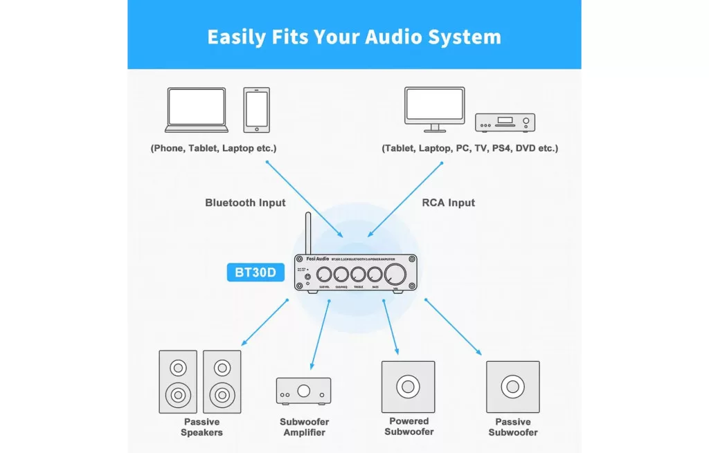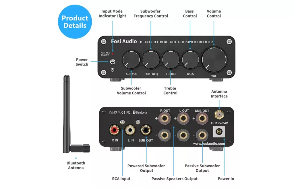 A Fosi Audio BT30D túlmutat az alapvető funkciókon. Számos modell dedikált subwoofer kimenettel rendelkezik, amely lehetővé teszi egy aktív subwoofer csatlakoztatását (külön vásárolható), így javítva az alacsony frekvenciás hatásokat filmek vagy zene esetén. Ezen kívül a többféle bemeneti lehetőség rugalmasságot biztosít a számítógép, TV vagy más audio források vezetékes csatlakoztatásához. A basszus és magasság szabályozásával személyre szabhatja a hangzást, míg a kompakt és stílusos kialakítással a Fosi Audio BT30D 2.1 erősítő vonzó választás mindenkinek, aki erőteljes és kényelmes módon szeretné fejleszteni audio rendszert.