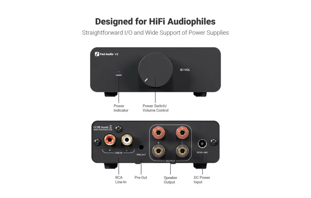 Emeld fel asztali audio rendszered vagy alakíts ki dinamikus házimozi beállítást a Fosi Audio V3 sztereó erősítővel. Ez a sokoldalú erősítő erőteljes hangzást biztosít, tiszta és dinamikus hangot biztosítva passzív hangszóróid számára.
