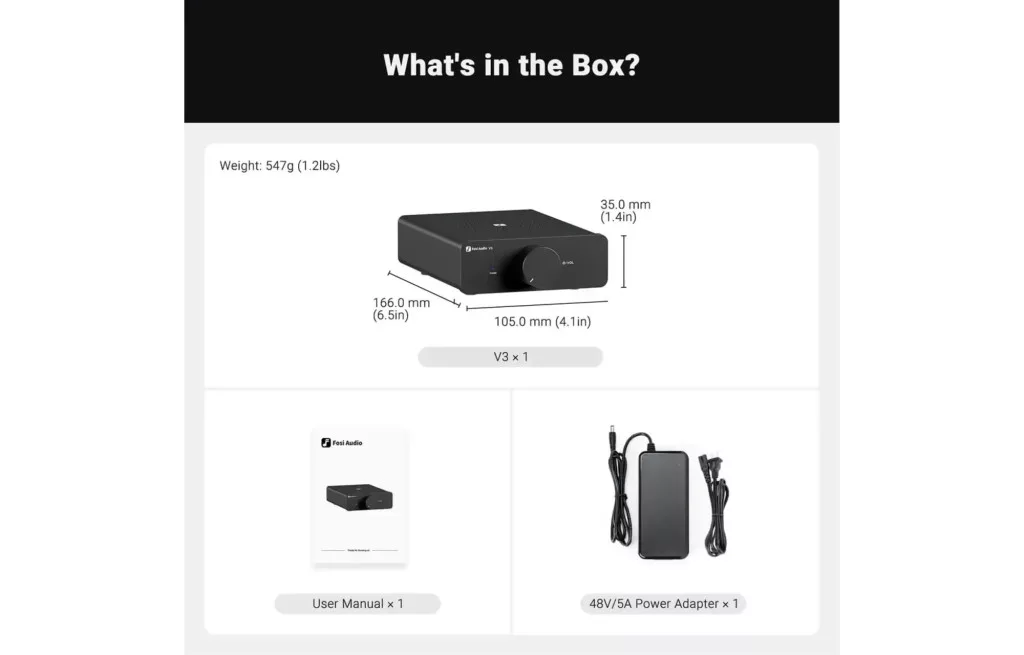 A szívében a V3 a Texas Instruments TPA3255 chip technológiját alkalmazza a hatékony teljesítmény-átvitel érdekében. Ez tiszta, részletes hangvisszaadást biztosít, lehetővé téve, hogy teljes mértékben élvezhesd a zenéd vagy filmjeid finom árnyalatait. A V3 többféle módon csatlakoztatható audio forrásaidhoz. A Bluetooth 5.0 vezeték nélküli kapcsolat lehetővé teszi a zenék közvetlen streamelését okostelefonról, táblagépről vagy más kompatibilis eszközökről, míg az RCA bemenetek vezetékes csatlakozást biztosítanak számítógépekhez, TV-khez vagy egyéb eszközökhöz. Néhány modell akár 3,5 mm-es jack csatlakozót is tartalmaz az analóg audio forrásokhoz. A cserélhető op-ampok lehetőséget adnak a hangzás testreszabására, míg a kompakt, stílusos dizájn a Fosi Audio V3 sztereó erősítőt vonzó választássá teszi mindenkinek, aki erőteljes és sokoldalú audio megoldást keres.