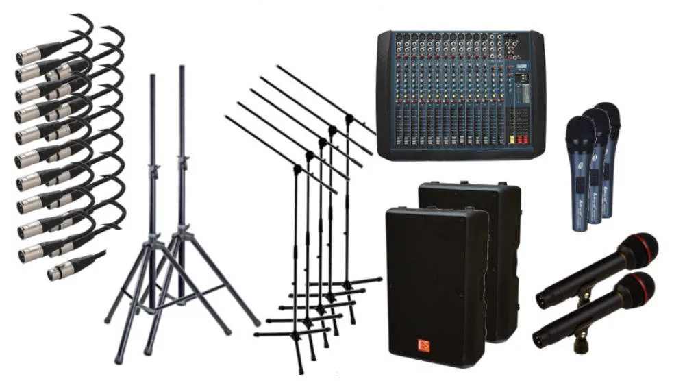 HT-P12V1, hangosító alapcsomag 3 mikrofonnal, 6 csatornás effektprocesszoros keverővel, 12 collos hangfalakkal