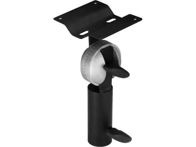 - állítható dőlésszöggel, szárnyas rögzítőcsavarral, feketére lakkozott acél kivitelben, a 90x105mm-es rögzítőtalpon 4 rögzítőfurattal és 2 hosszúkás lukkal, szabványos átmérőjű állványokhoz, 15kg teherbírással. 2 szárnyas rögzítőcsavarral és 4 önmetsző csavarral együtt szállítjuk.