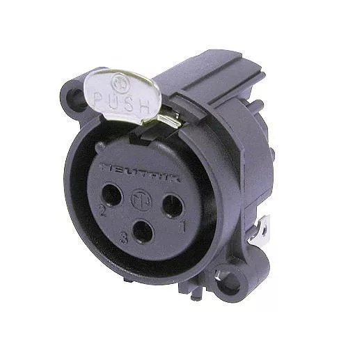 Neutrik NC3FAH2 3 pólusú XLR aljzat vízszintes nyákhoz, külön GND és ház, retesszel
