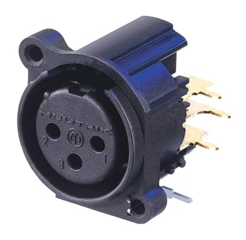 Neutrik NC3FAHR20 3 pólusú XLR aljzat jobb oldali nyákhoz, külön GND és ház