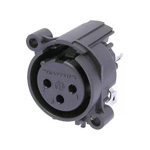 Neutrik NC3FAV10 3 pólusú XLR aljzat függőleges nyákhoz, közösített 1. láb+GND+ház