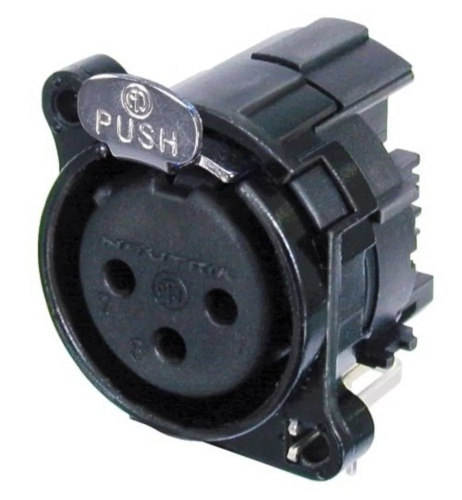 Neutrik NC3FBH2B 3 pólusú XLR aljzat fekete, vízszintes nyákhoz, külön GND és ház, retesszel