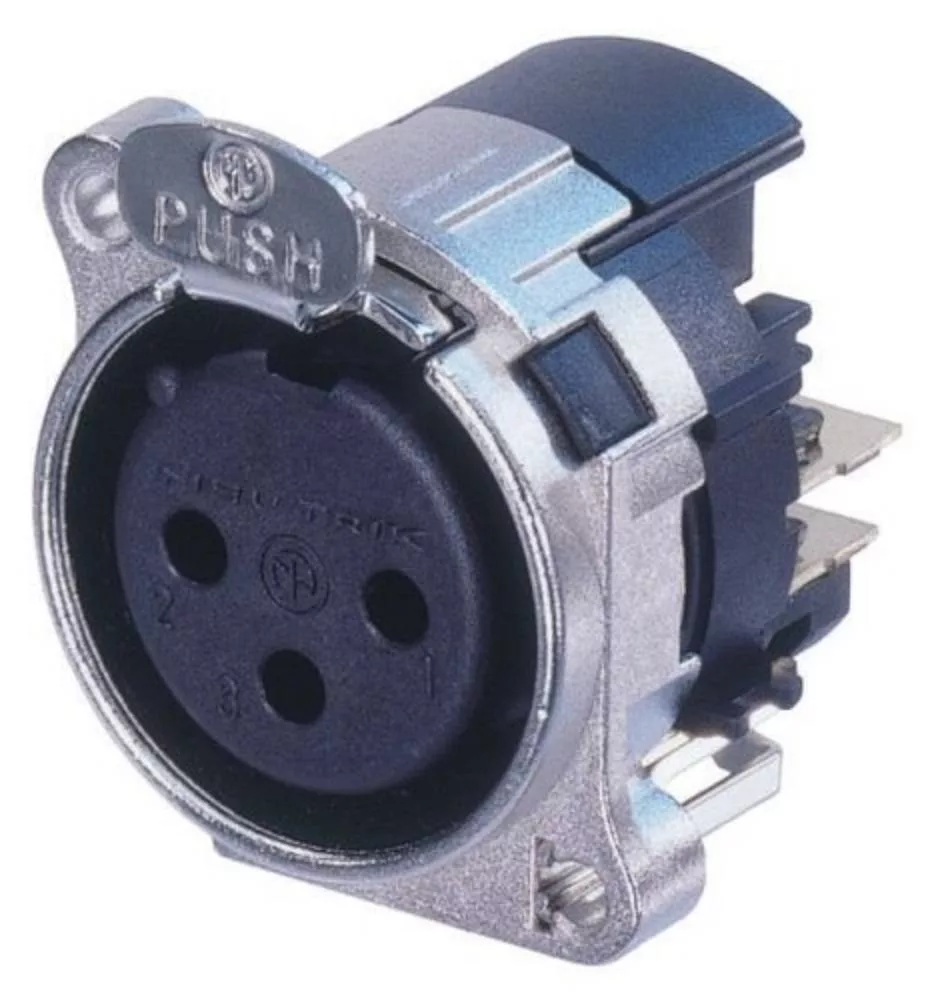 Neutrik NC3FBHL1 3 pólusú XLR aljzat bal oldali nyákhoz, közösített 1. láb+GND+ház, retesszel