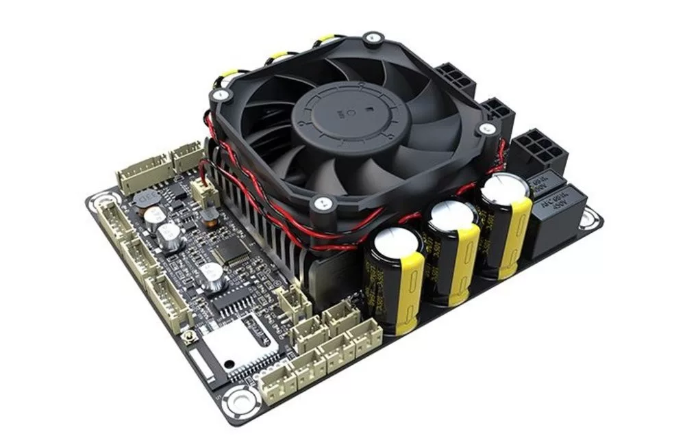 JAB5 delivers 100W output power per channel into a 6Ohm load. Besides Bluetooth input, JAB5 supports line input and I2S input. Thanks to the equipped ADAU1701 DSP, JAB5 supports programming with SigmaStudio, APP control and PC UI control after connection with WONDOM ICP5 or higher version(s), through which, you can adjust volume, gain, frequency and EQ setting to customize your own audio. In addition to 4.0 mode (4 x 100W), JAB5 supports configuration as 2.1 mode (2 x 100W + 1 x 200W), 2.0 / 0.2 mode (2 x 200W), applicable for various audio projects. Furthermore, JAB5 can cascade with another JAB5 to build audio 8.0 or other systems. Wireless audio input, integrated ADAU1701 DSP, multiple output modes and high quality audio performance make JAB5 perfectly suitable for Bluetooth speakers, home audio, garden audio, digital crossover and DIY audio applications. A DC10V-39V power supply is required.